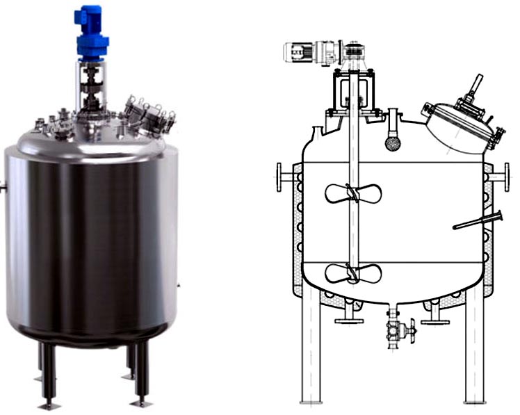 304、316L材料制作,以及設(shè)置加熱、冷卻裝置,以滿足不同的工藝和生產(chǎn)需要.加熱形式有夾套加熱、盤管加熱,該設(shè)備結(jié)構(gòu)合理、工藝先進(jìn)