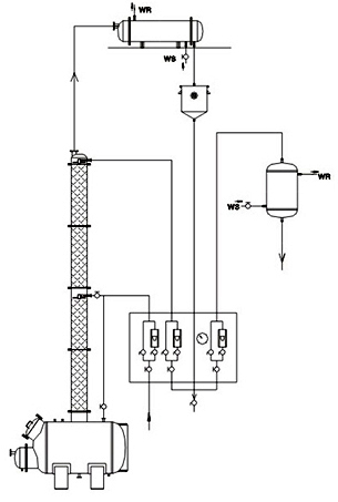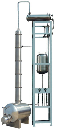 本裝置采用高效不銹鋼波紋填料,接觸酒精部位,如塔體、冷凝器、穩(wěn)壓罐、冷卻蛇等均采用優(yōu)質(zhì)不銹鋼制作,成品酒精不被污染,塔釜采